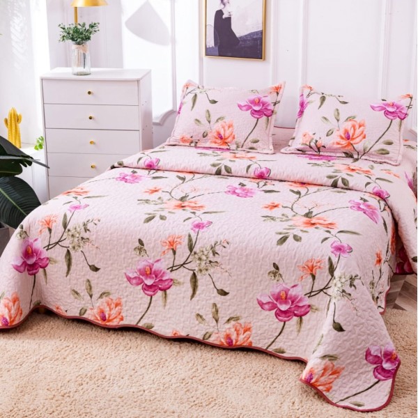 Cuvertura pat dublu din Bumbac Satinat Superior, 3 PIESE, Roz, flori, Alti producatori, cod produs: CVP25