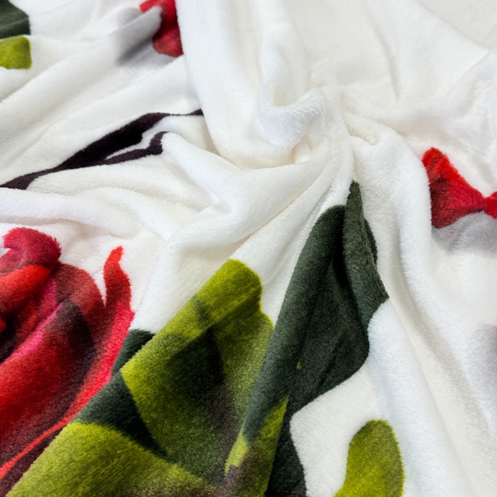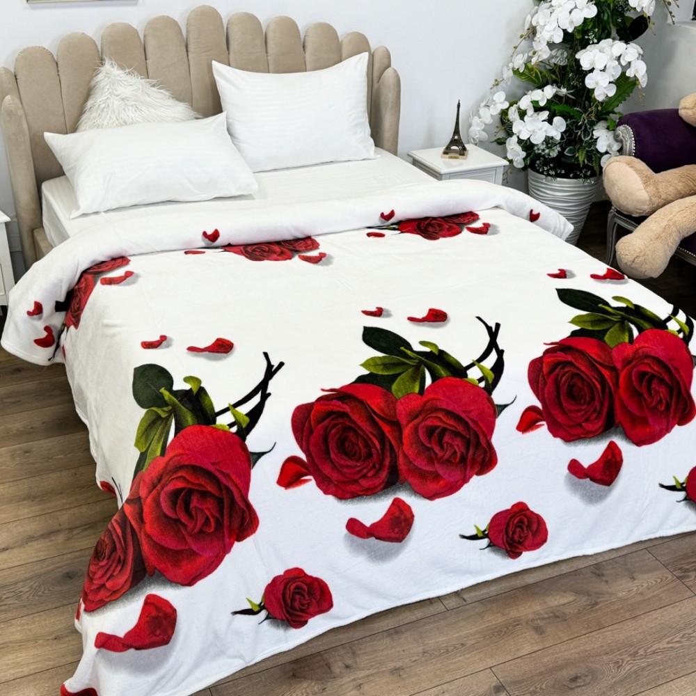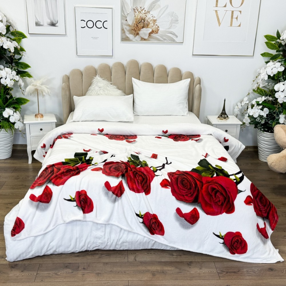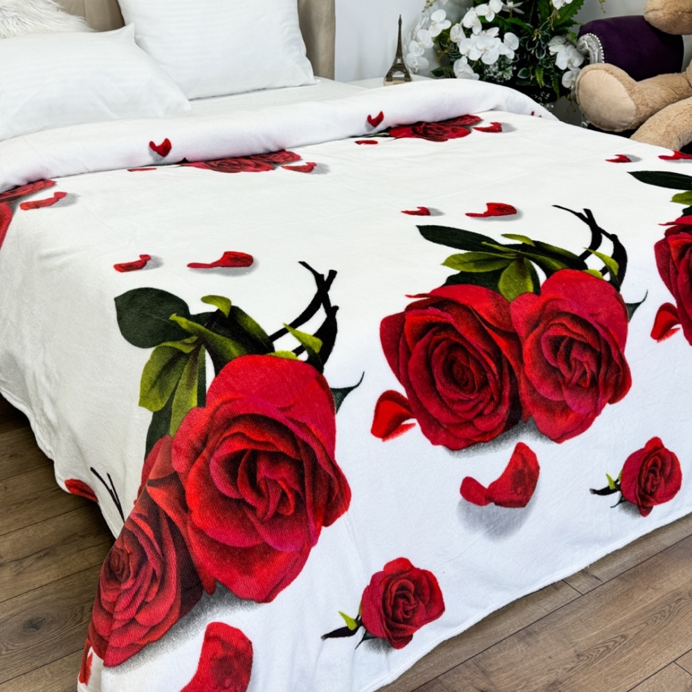 Patura pufoasa cocolino 200x230cm, 240g/mp, Alb, trandafiri rosii, Super Design Pucioasa, cod produs: YJP139