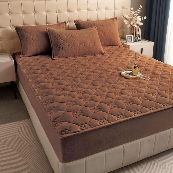 Husã matlasatã tip topper din catifea, 160x200cm + 2 fete de perna 50x70cm, maro, Alti producatori, cod produs: YAT150