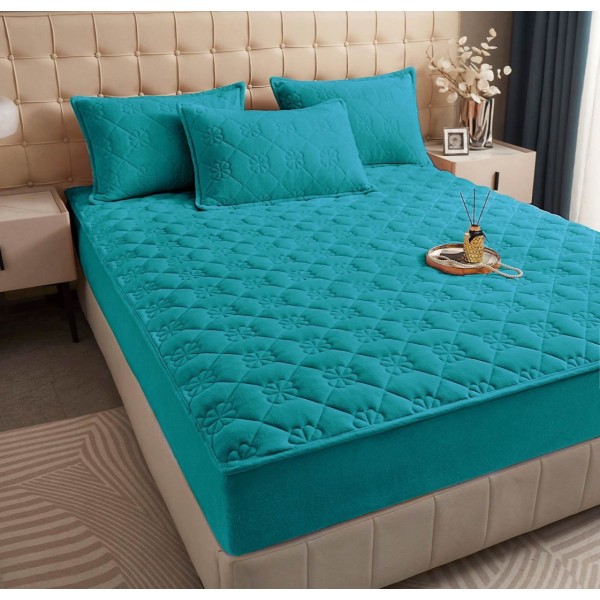 Husã matlasatã tip topper din catifea, 160x200cm + 2 fete de perna 50x70cm, albastru, Alti producatori, cod produs: YAT151