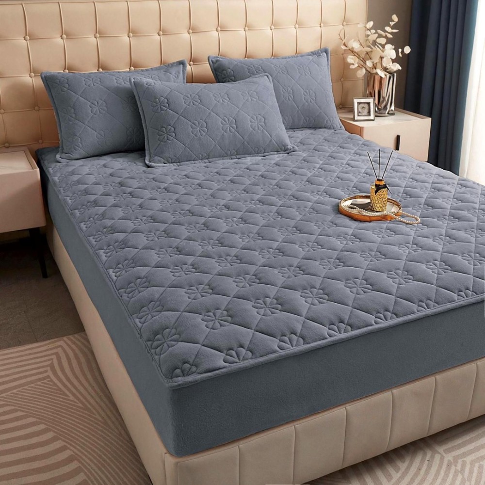 Husã matlasatã tip topper din catifea, 160x200cm + 2 fete de perna 50x70cm, gri, Alti producatori, cod produs: YAT154