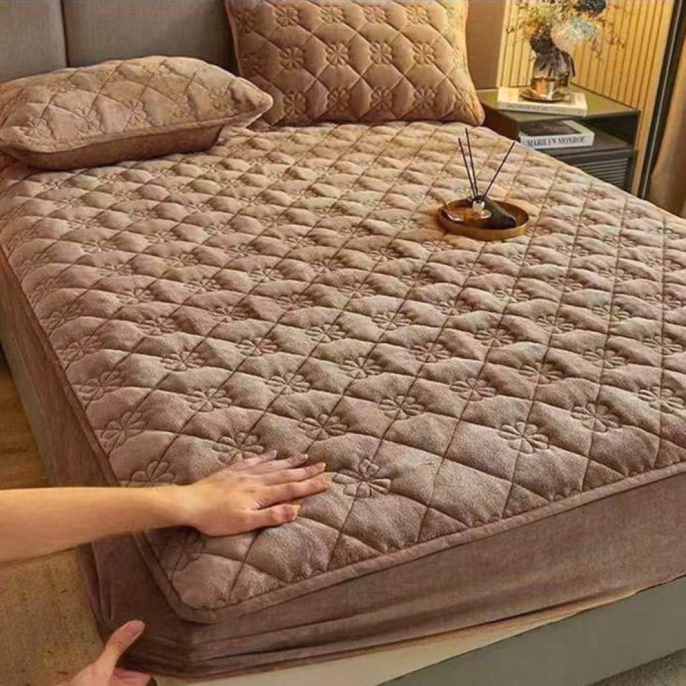 Husã matlasatã tip topper din catifea, 160x200cm + 2 fete de perna 50x70cm, cappuccino, Alti producatori, cod produs: YAT163