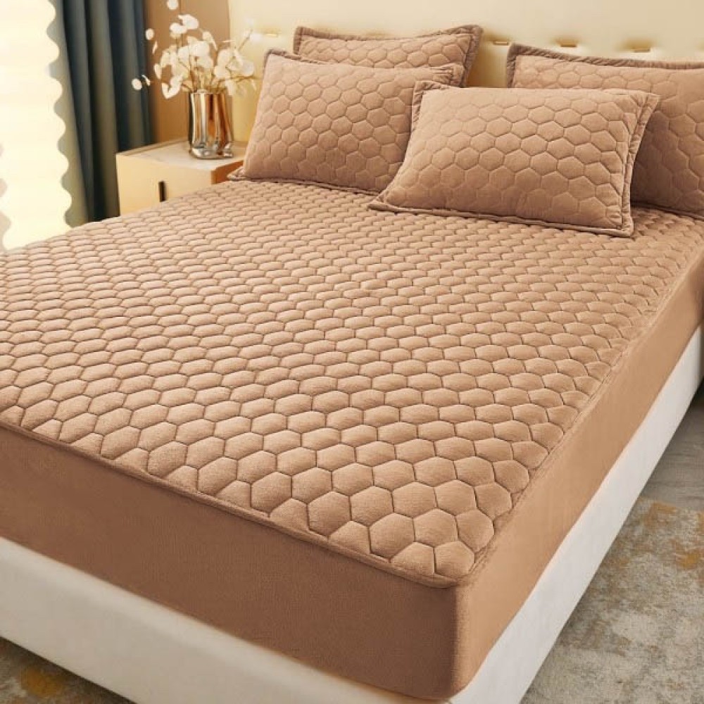 Husã matlasatã tip topper din catifea, 160x200cm + 2 fete de perna 50x70cm, maro deschis, Alti producatori, cod produs: YAT126