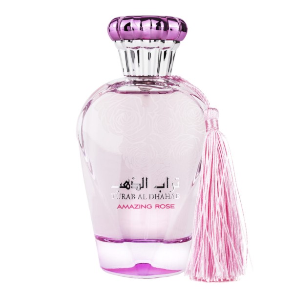 Turab Al Dhahab Amazing Rose celebrează frumusețea trandafirului într-o aromă dulce și catifelată, îmbinată cu senzualitate moscului și note florale diafane.