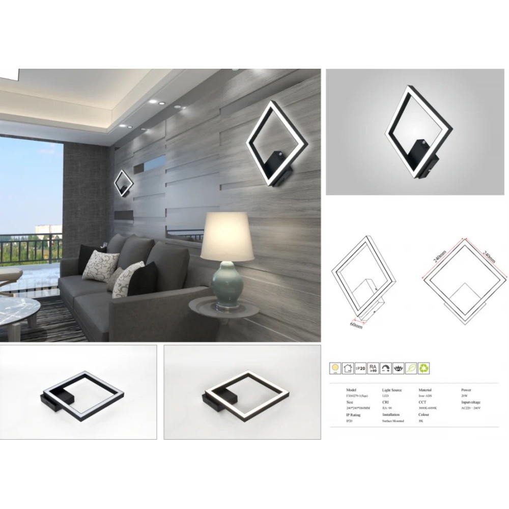 Aplica LED RFAN, Model FX20679-1, Cu Telecomanda, 3 Tipuri De Lumina, 20W, Negru, cod produs: RFN-FX20679-1(Squ)