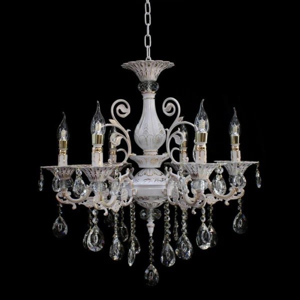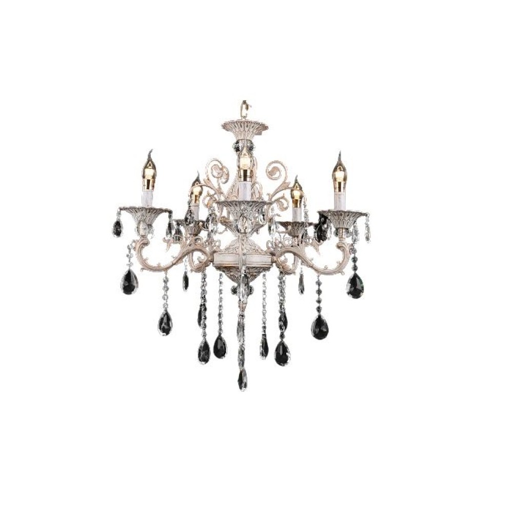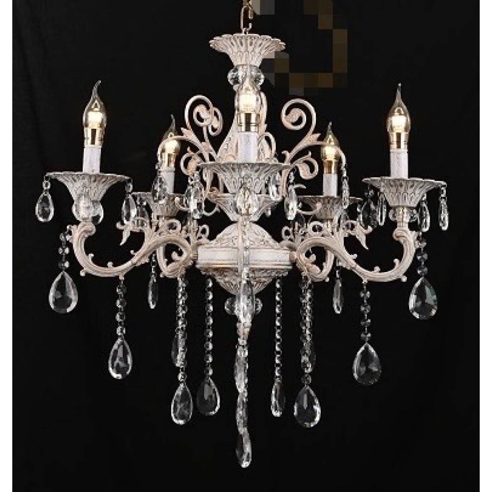 Candelabru RFAN, Model 1018/8B, Cu Margele Tip Cristal, Metal, 8 X E14, Alb, cod produs: RFN-1018/8B