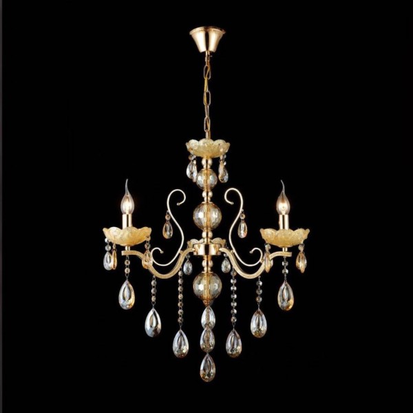 Candelabru RFAN, Model 7703-3 Cu Margele Tip Cristal, Metal, 3 X E14, Auriu, cod produs: RFN-7703-3