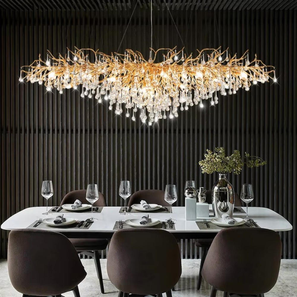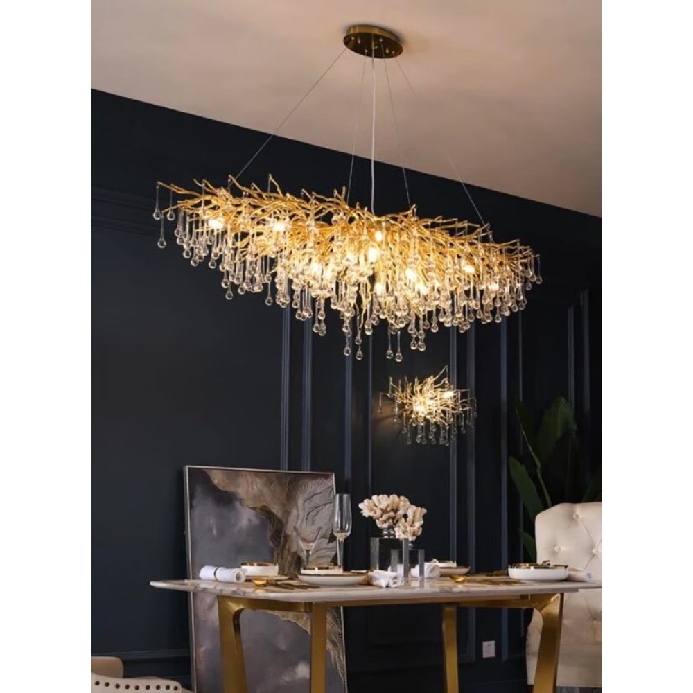 • Cu un design extravagant si sofisticat, acest candelabru cu cristale stralucitoare va reprezenta cu siguranta o exprimare de stil indrazneata si un punct de atractie in locuinta dvs.
