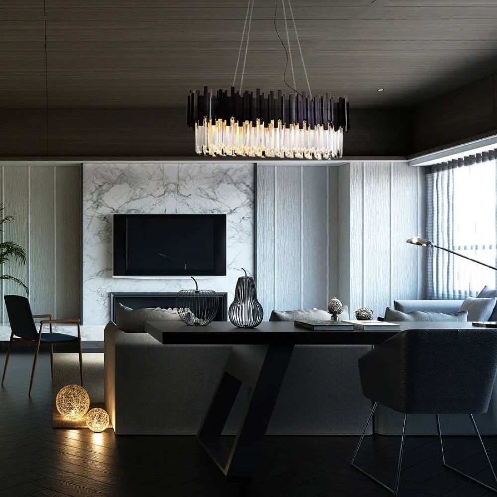 Candelabru RFAN, Model WL339/800*300, Textura Cristal, Metal, 8 X E27, Negru, cod produs: RFN-WL339/800*300BK
