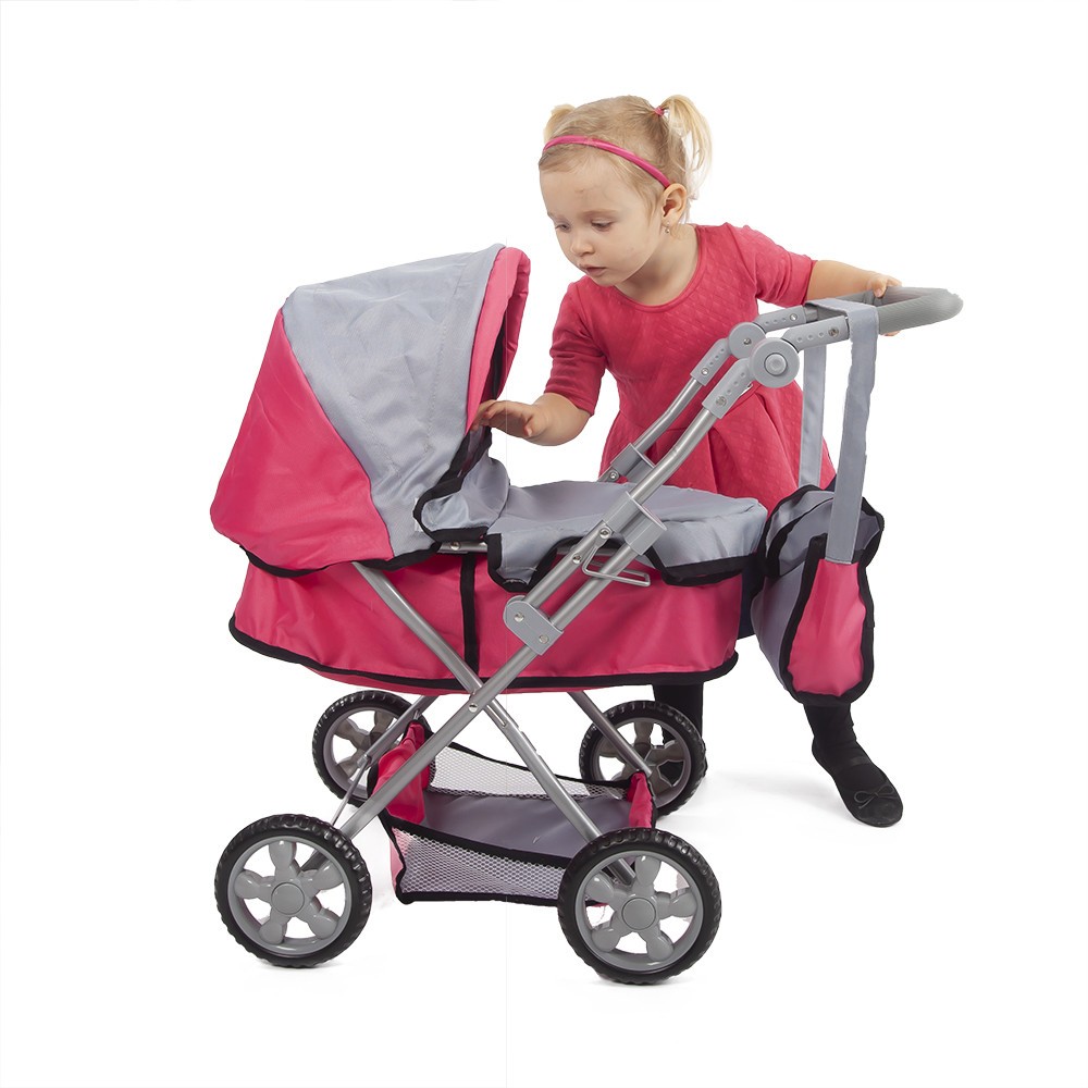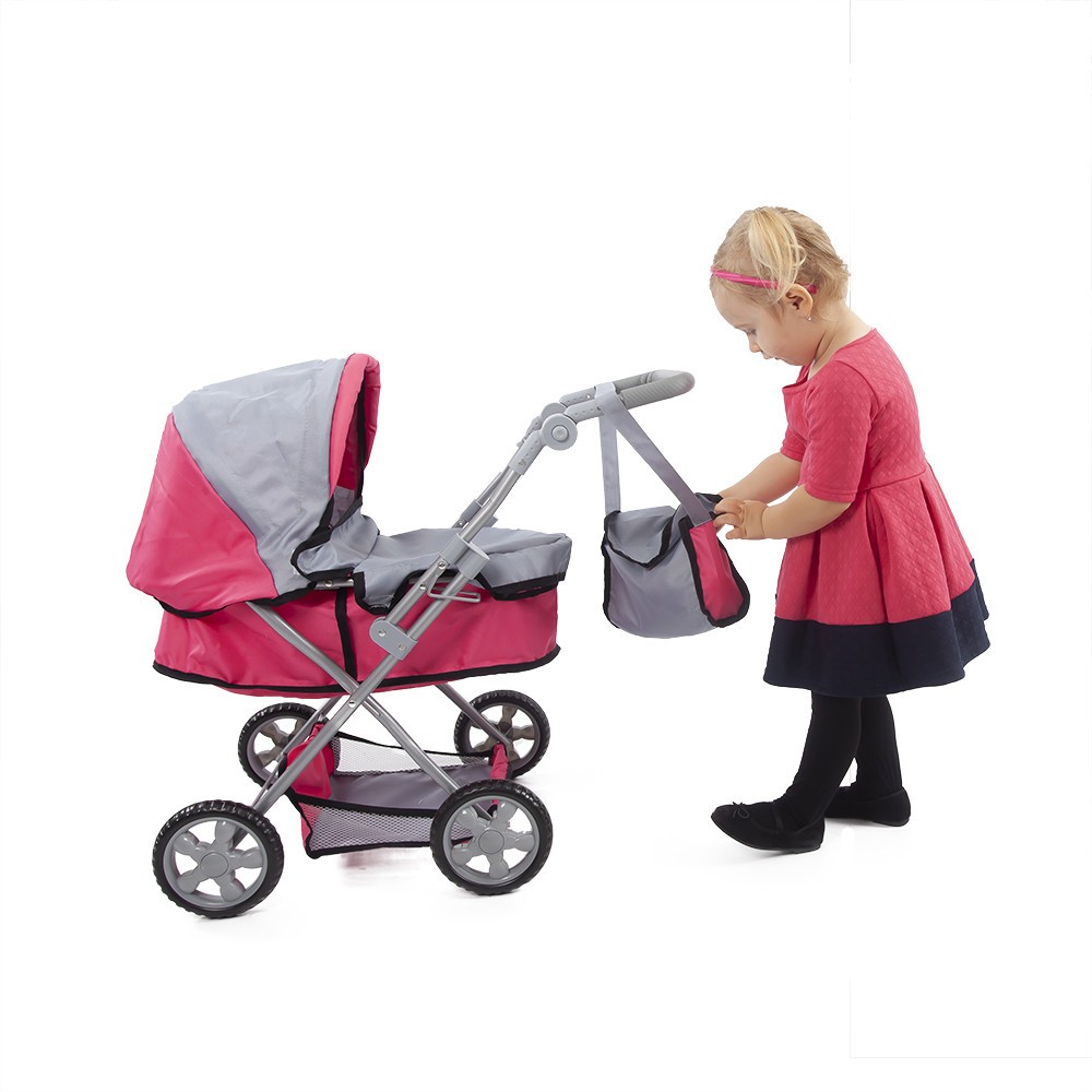 Cu un landou spatios, o geanta de depozitare generoasa si un cos de depozitare in partea inferioara, acest carucior permite micutei tale sa-si transporte papusa preferata si toate accesoriile acesteia oriunde merge. Parasolarul incorporat ofera protectie impotriva razelor solare, astfel incat papusa sa fie in siguranta chiar si in zilele insorite.