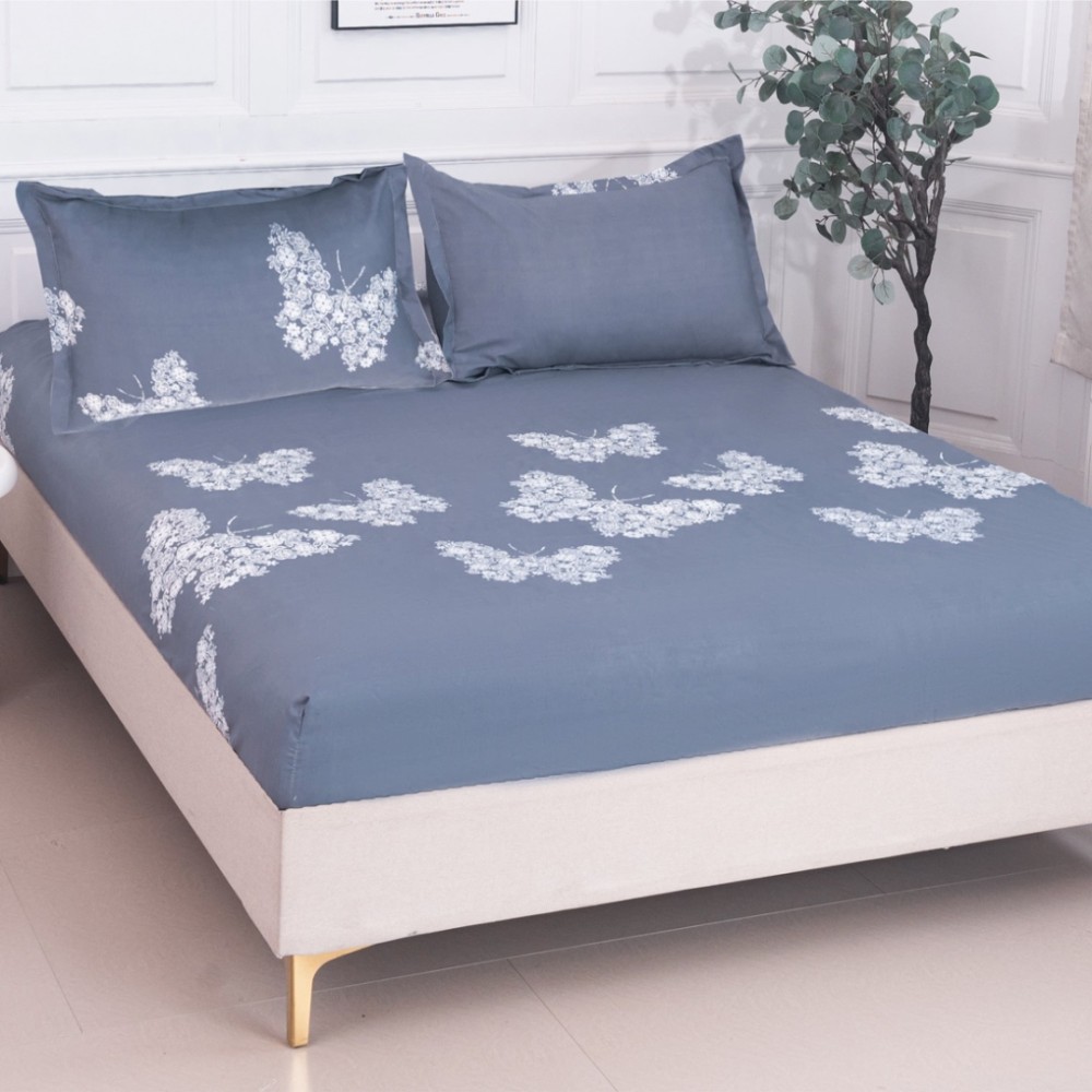 Cearșaf cu Elastic 180x200 cm + 2 Fețe de Pernă 50x70 cm, Gri, Fluturi, Casa Minunata, cod produs: INS-HS21