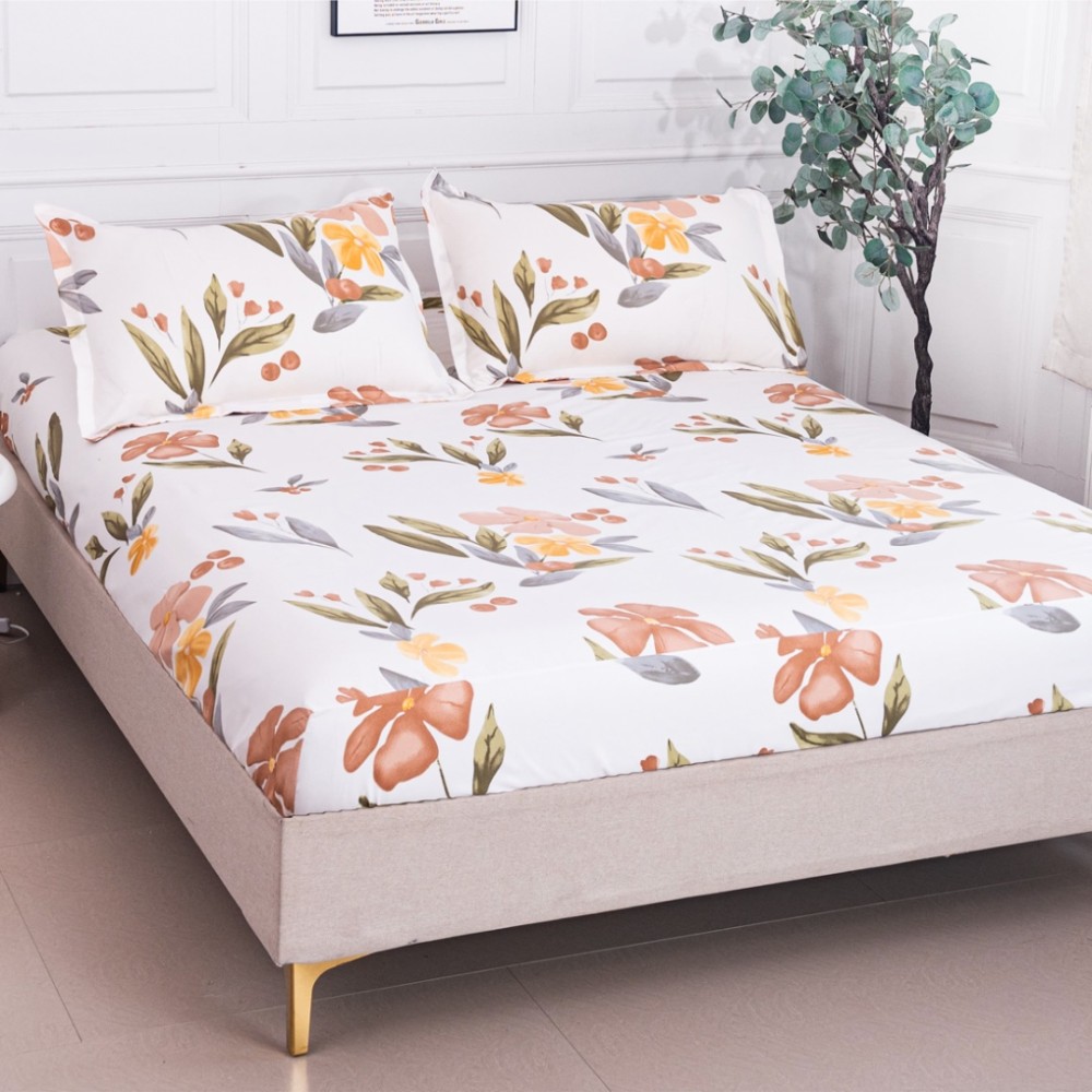 Cearșaf cu Elastic 180x200 cm + 2 Fețe de Pernă 50x70 cm, Ivoire, Flori de Toamna, Casa Minunata, cod produs: INS-HS18