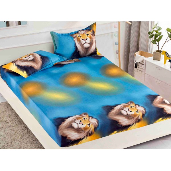 Cearsaf cu elastic, Bumbac FINET, 160/180x200cm, 2 fete de perne 50x70cm, Jojo Home, Albastru-Multicolor, lei, cod produs: JOH142