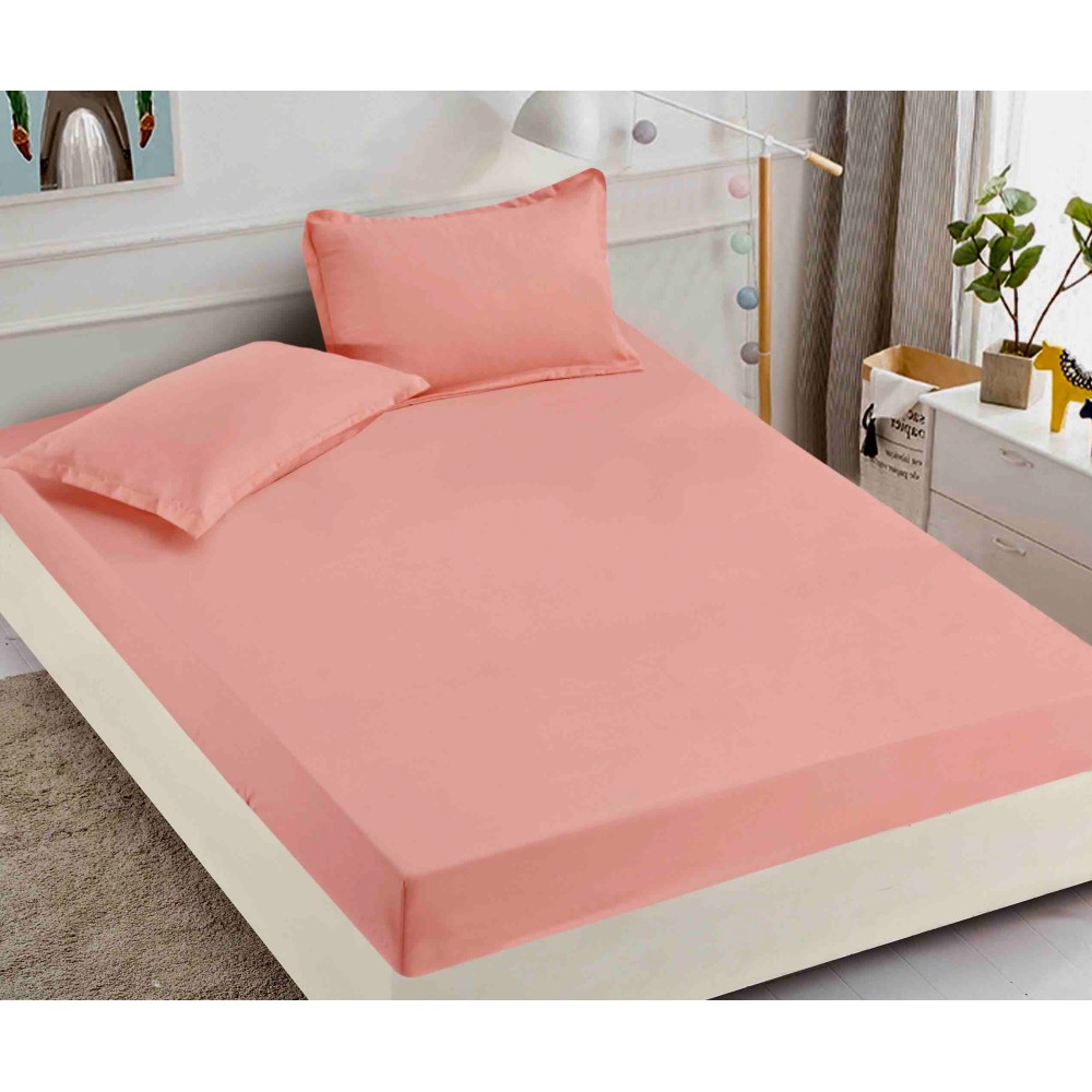 Cearsaf cu elastic, Bumbac FINET, 160/180x200cm, 2 fete de perne 50x70cm, Jojo Home, Uni, Roz, cod produs: JOH171