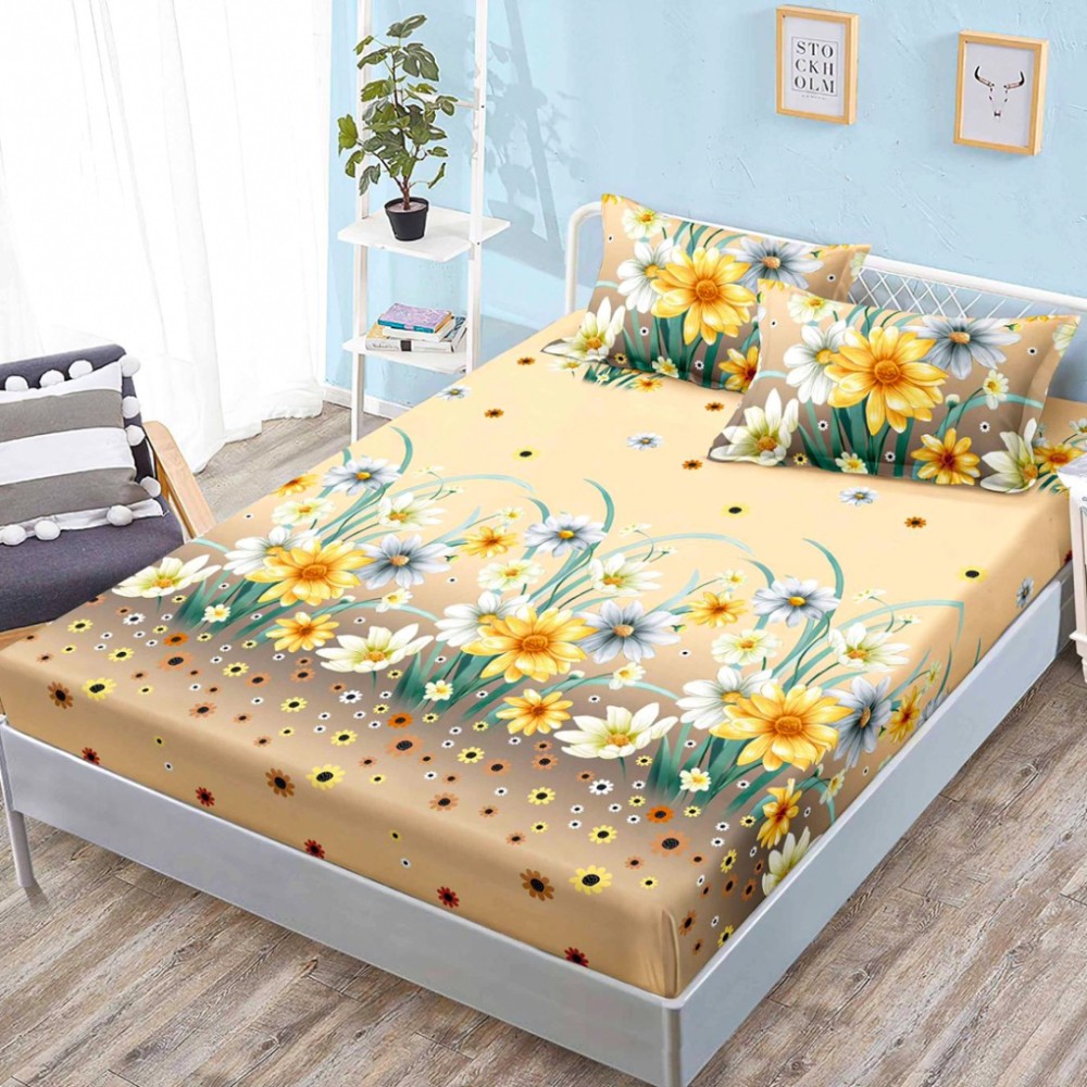 Cearsaf cu elastic, FINET, 160x200cm, 2 fete de perne 50x70cm, Bej, Flori – confort și eleganță pentru patul tău, Primavara Casa, cod produs: PRM-HF-D043