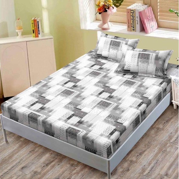 Cearsaf cu elastic, FINET, 160x200cm, 2 fete de perne 50x70cm, Gri, abstract, Primavara Casa, cod produs: PRH38