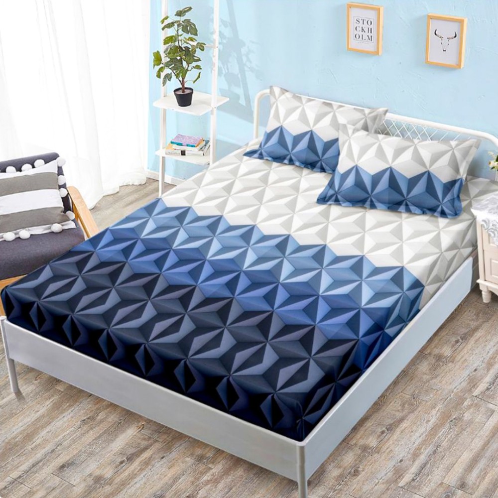 Cearsaf cu elastic, FINET, 160x200cm, 2 fete de perne 50x70cm, Gri, Albastru, Forme Geometrice – confort și eleganță pentru patul tău, Primavara Casa, cod produs: PRM-HF-D013