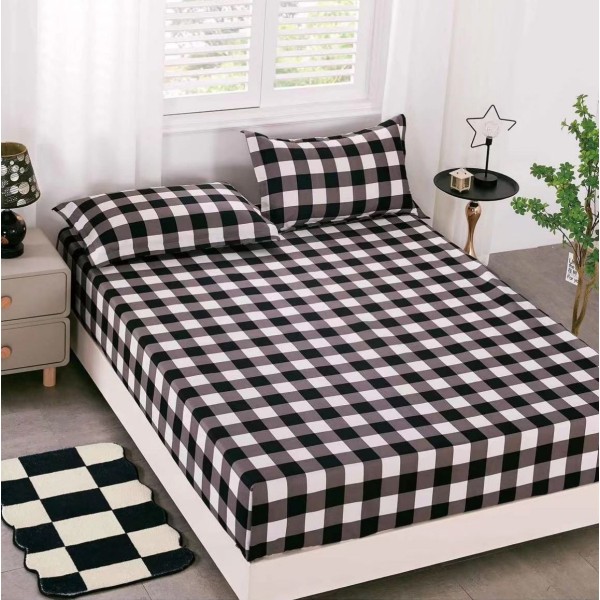 Cearsaf cu elastic, Bumbac FINET, 160x200cm, 2 fete de perne 50x70cm, Gri, patratele, Alti producatori, cod produs: SKH33
