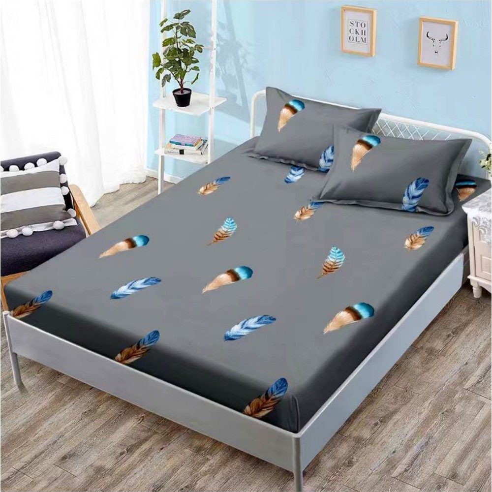 Cearsaf cu elastic, Bumbac FINET, 160x200cm, 2 fete de perne 50x70cm, Gri, pene, Alti producatori, cod produs: SKH22