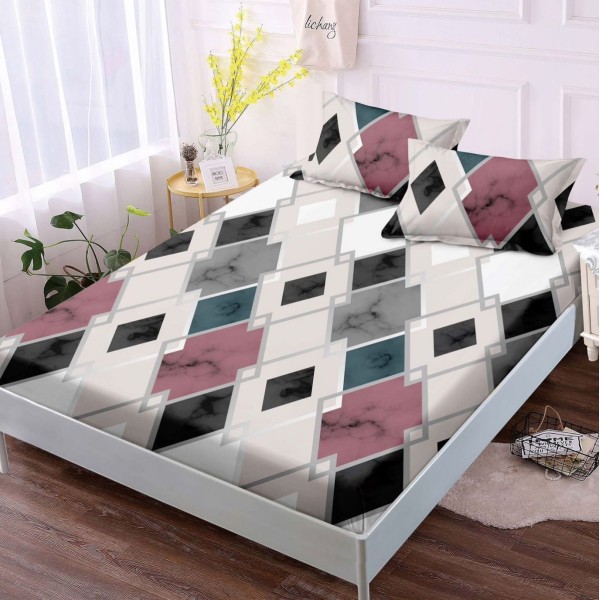 Cearsaf cu elastic, Bumbac FINET, 160x200cm, 2 fete de perne 50x70cm, Gri, romburi, Alti producatori, cod produs: SKH55