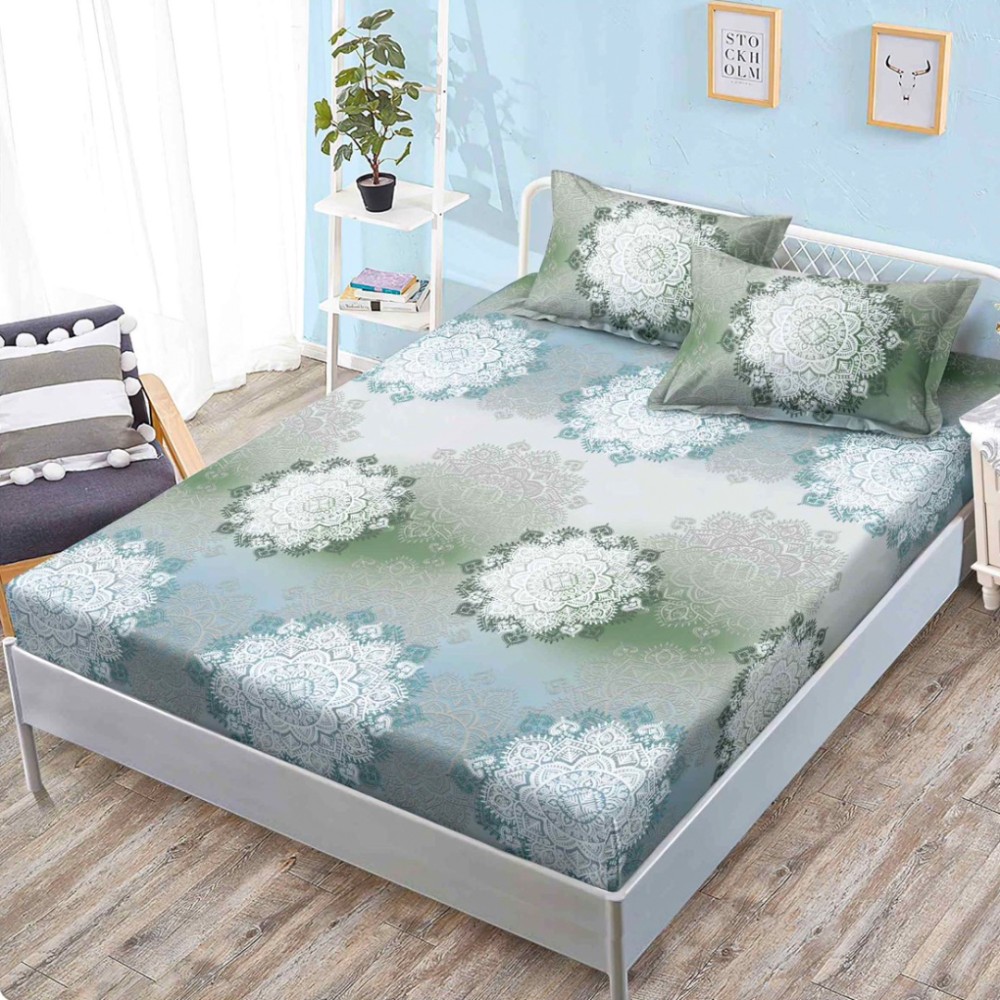 Cearsaf cu elastic, FINET, 160x200cm, 2 fete de perne 50x70cm, Menta, Model Oriental – confort și eleganță pentru patul tău, Primavara Casa, cod produs: PRM-HF-D3008