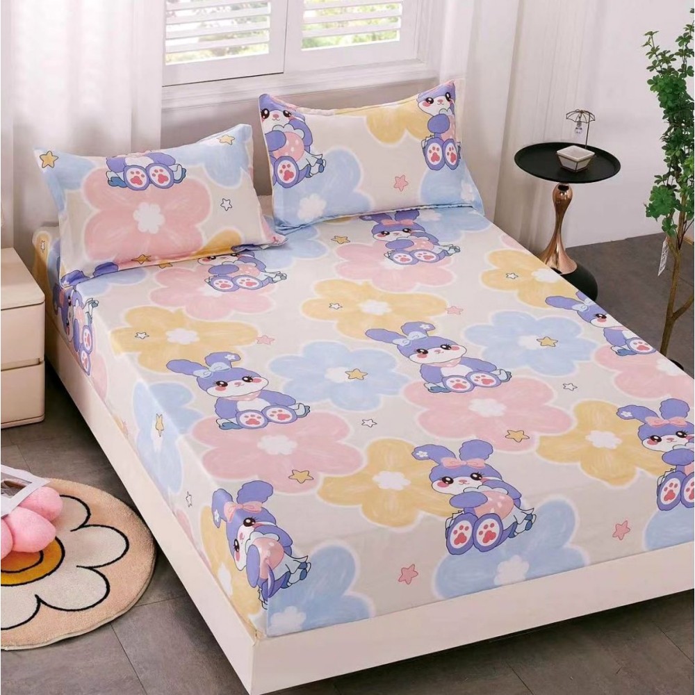 Cearsaf cu elastic, Bumbac FINET, 160x200cm, 2 fete de perne 50x70cm, Mov, iepurasi, Alti producatori, cod produs: SKH28