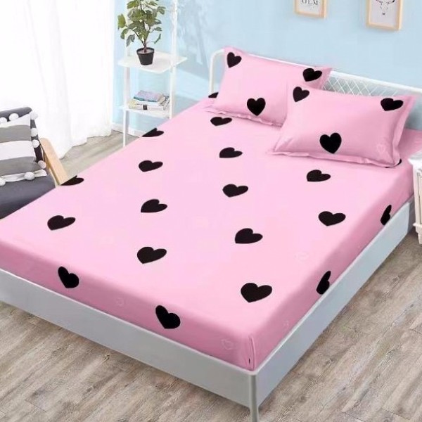 Cearsaf cu elastic, FINET, 180x200cm, 2 fete de perne 50x70cm, Roz, inimioare, Johny Home Pucioasa, cod produs: SPR-G-237