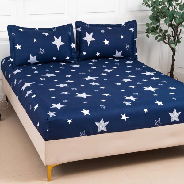 Cearsaf cu elastic, Bumbac Satinat, 160/180x200cm, 2 fete de perne 50x70cm, Albastru, stelute, Alti producatori, cod produs: HSP85