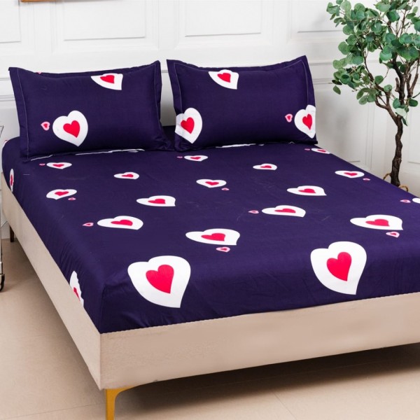 Cearsaf cu elastic, Bumbac Satinat, 160/180x200cm, 2 fete de perne 50x70cm, Bleumarin, inimioare, Alti producatori, cod produs: HSP81