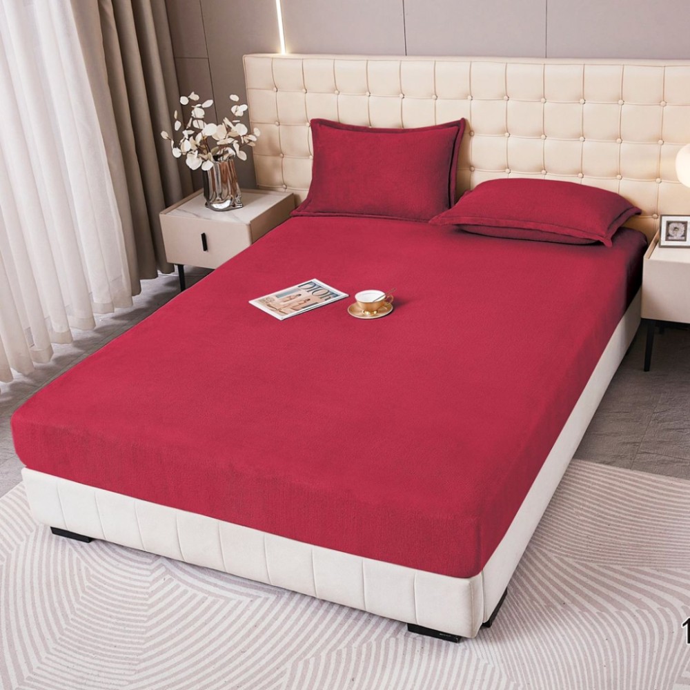 Cearșaf cu Elastic Cocolino 160x200x25 cm – Set cu 2 Fețe de Pernă, Model UNI, Gros și Pufos, Calitate Premium pentru Confort și Eleganță, Rosu, Super Design Pucioasa, cod produs: SDP-HU10
