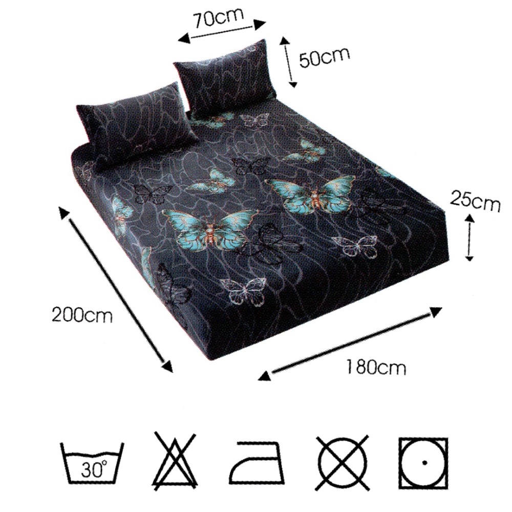 Cearșaf cu Elastic Cocolino 180x200x25 cm – Set cu 2 Fețe de Pernă, Gros și Pufos, Calitate Premium pentru Confort și Eleganță, Bleumarin, Fluturi, Super Design Pucioasa, cod produs: BCC-HCE06