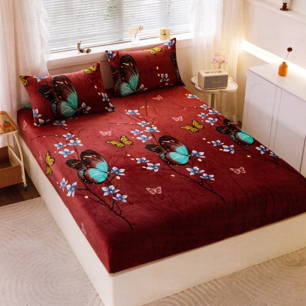Cearșaf cu Elastic Cocolino 180x200x25 cm – Set cu 2 Fețe de Pernă, Gros și Pufos, Calitate Premium pentru Confort și Eleganță, Grena, Fluturi, Super Design Pucioasa, cod produs: BCC-HCE05