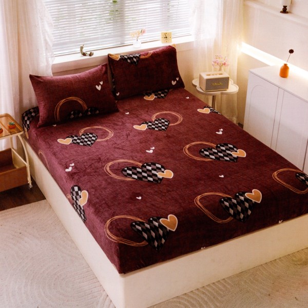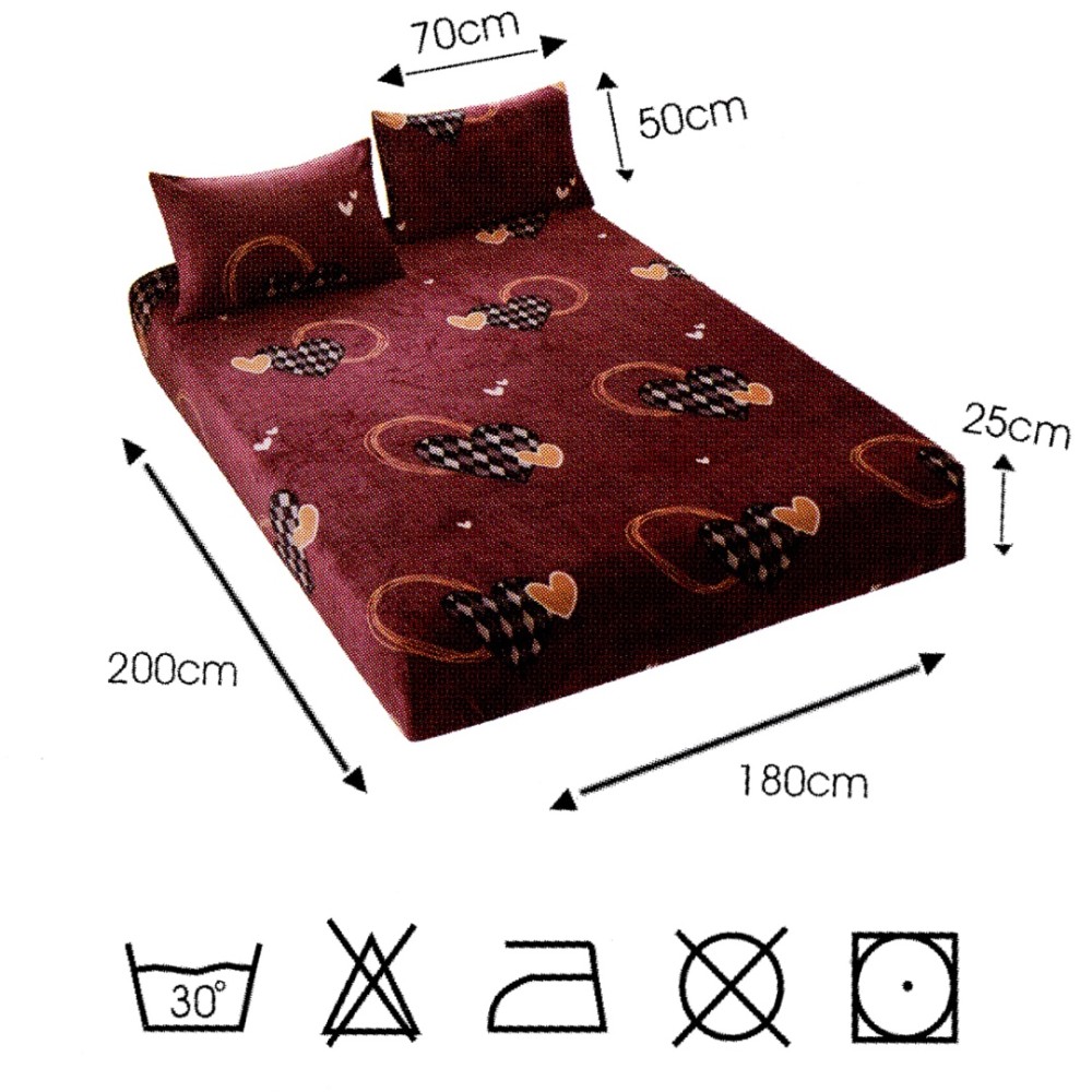 Cearșaf cu Elastic Cocolino 180x200x25 cm – Set cu 2 Fețe de Pernă, Gros și Pufos, Calitate Premium pentru Confort și Eleganță, Grena, Inimioare, Super Design Pucioasa, cod produs: BCC-HCE10