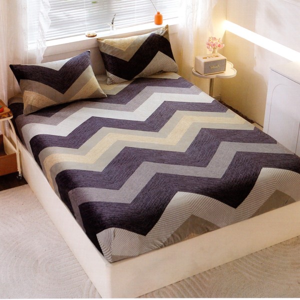 Cearșaf cu Elastic Cocolino 180x200x25 cm – Set cu 2 Fețe de Pernă, Gros și Pufos, Calitate Premium pentru Confort și Eleganță, Gri, Bej, Ziz-Zag, Super Design Pucioasa, cod produs: BCC-HCE03