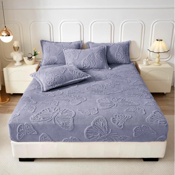 Cearsaf cu elastic COCOLINO, 180x200x25cm, 2 fete de perne, fluturi, Gri albastrui, JOJO Home, cod produs: YAH5