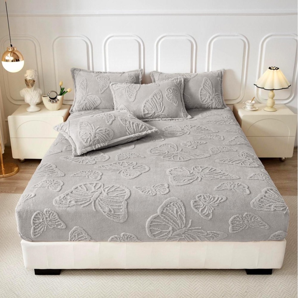 Cearsaf cu elastic COCOLINO, 180x200x25cm, 2 fete de perne, fluturi, Gri deschis, JOJO Home, cod produs: YAH2