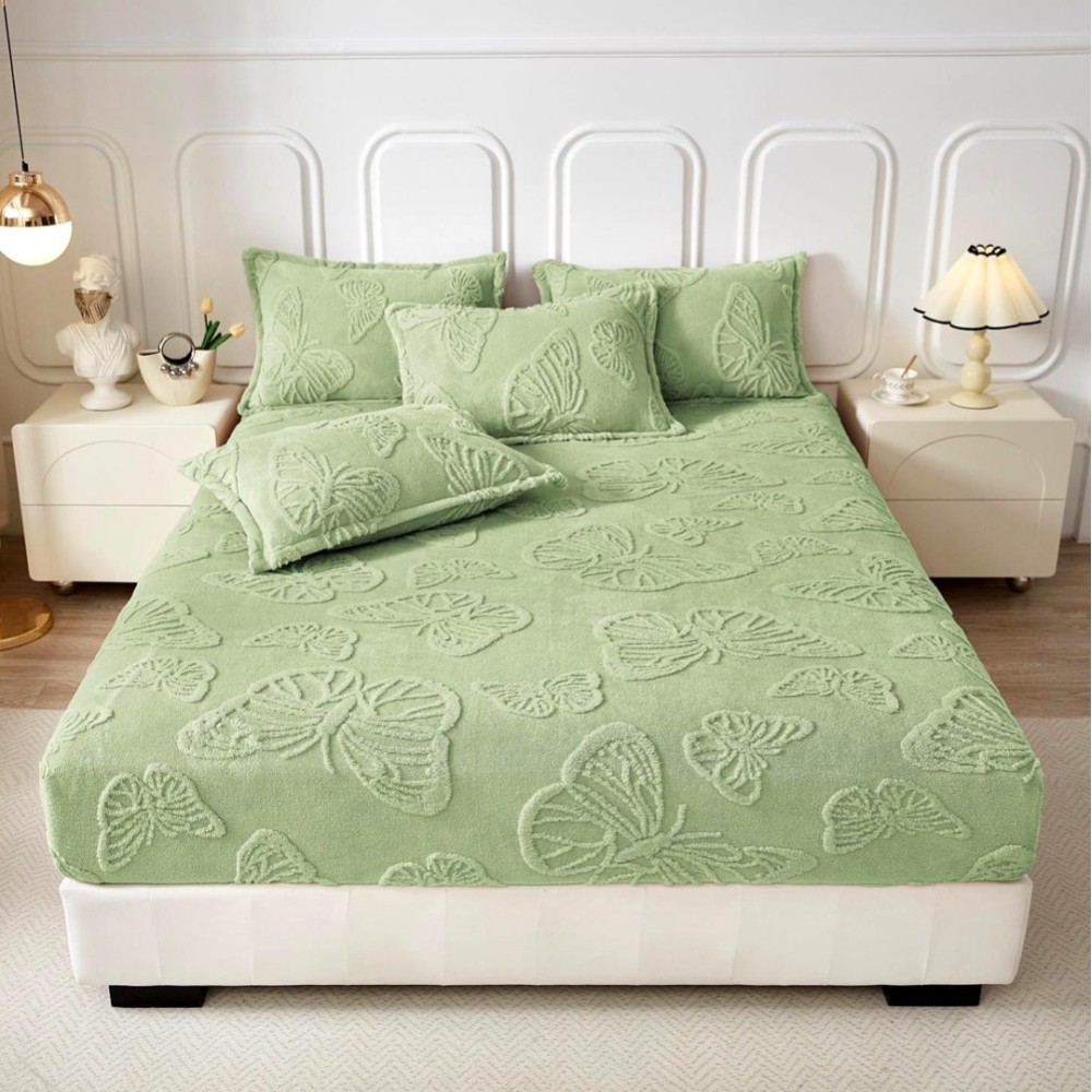 Cearsaf cu elastic COCOLINO, 180x200x25cm, 2 fete de perne, fluturi, Vernil, JOJO Home, cod produs: YAH8
