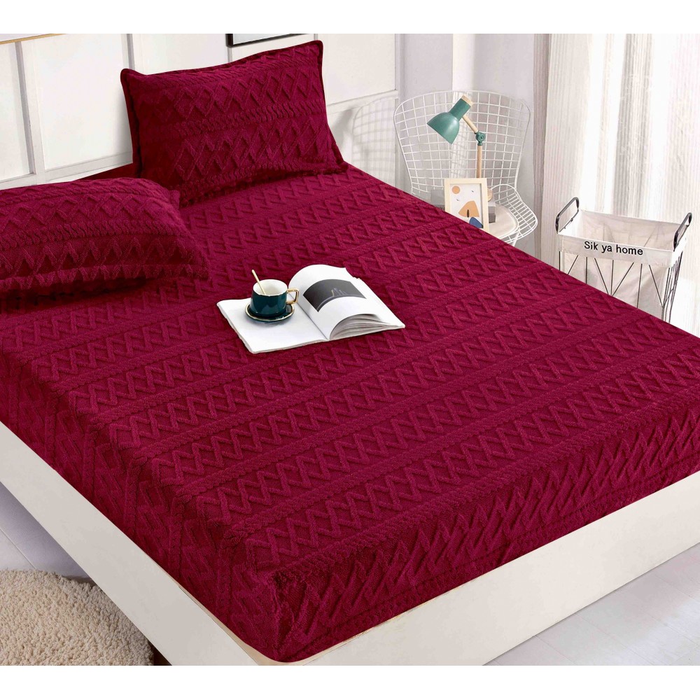 Cearsaf cu elastic COCOLINO, 180x200x25cm, 2 fete de perne, Jojo Home, model Tricotat, Grena, cod produs: JOH38