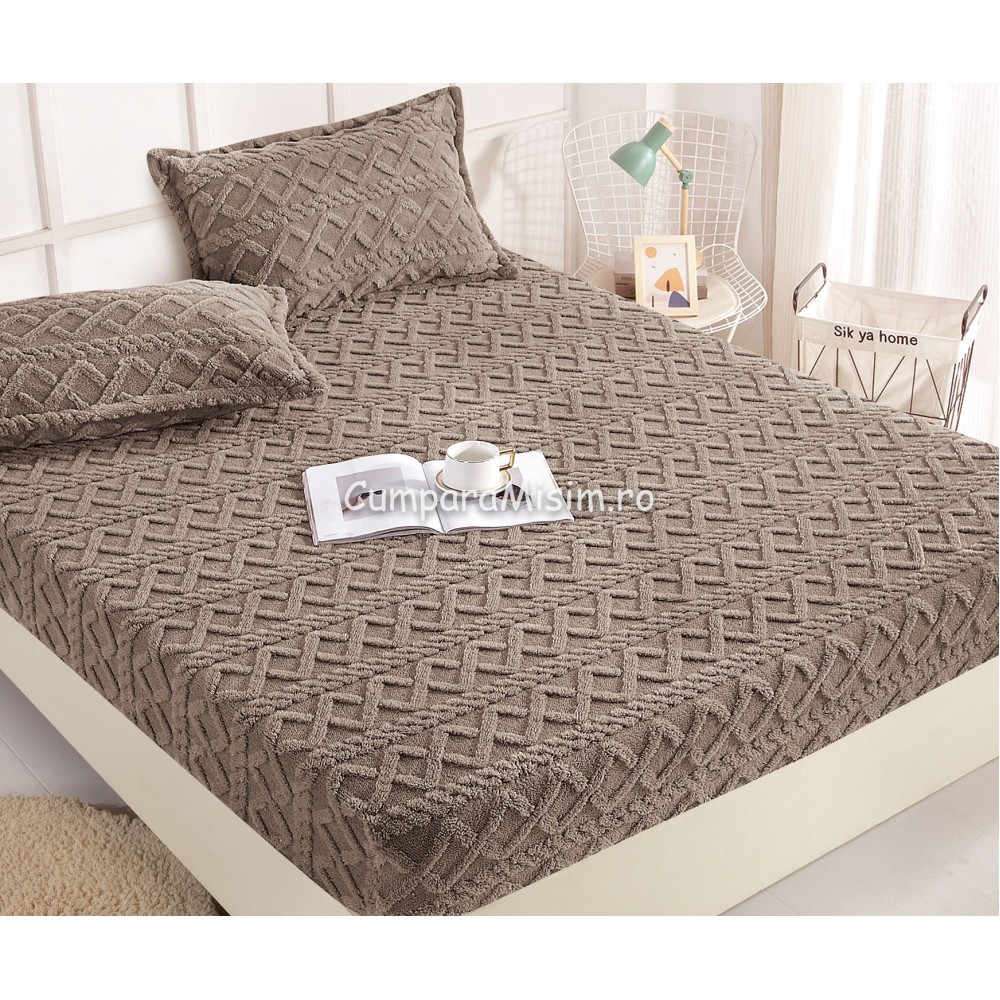 Cearsaf cu elastic Cocolino, gros, pufos, moale si fin, ideal pentru o saltea de 180x200cm, cu inaltime clasica de 25cm si doua fete de perna 50x70cm.