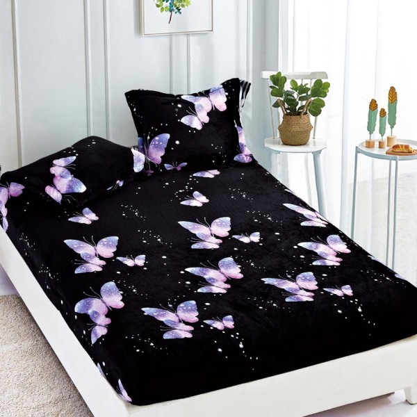 Cearsaf cu elastic COCOLINO, 180x200x25cm, 2 fete de perne, Jojo Home, Negru-Mov, fluturi, cod produs: JOH1