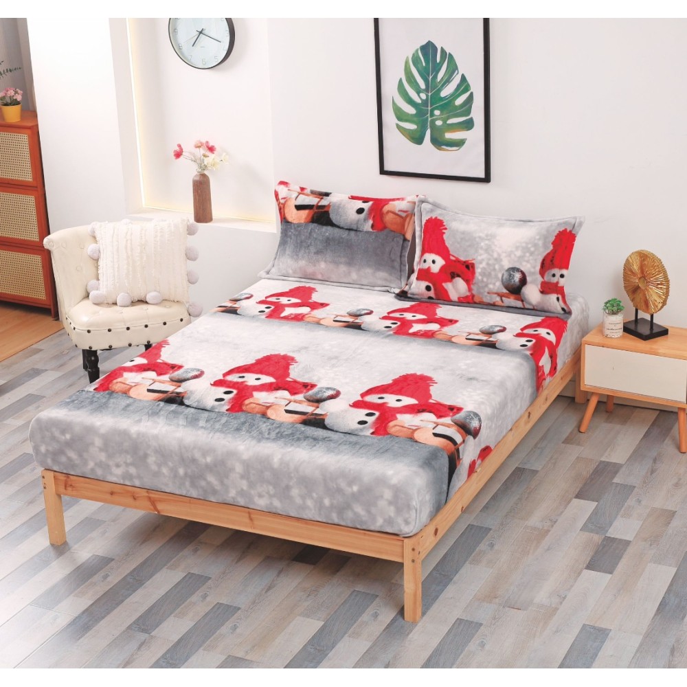 Cearsaf cu elastic CoCoLiNo Polar, 180x200x25cm, 2 fete de perne 50x70cm, Gri, Rosu, oameni de zăpadă, CumparaMisim, cod produs: SKH302