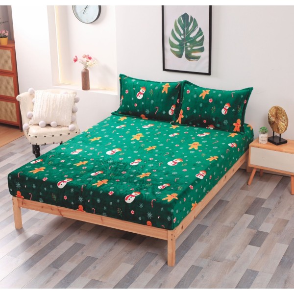 Cearsaf cu elastic CoCoLiNo Polar, 180x200x25cm, 2 fete de perne 50x70cm, Verde, oameni de zăpadă, fulgi de nea, CumparaMisim, cod produs: SKH306
