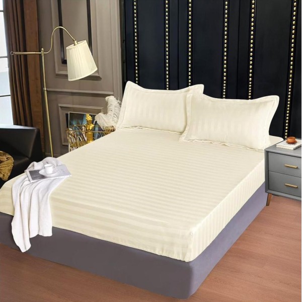 Cearsaf cu elastic, DAMASC FINETAT, 180x200cm, 2 fete de perne 55x80cm, Crem, Primavara Casa, cod produs: PRH201