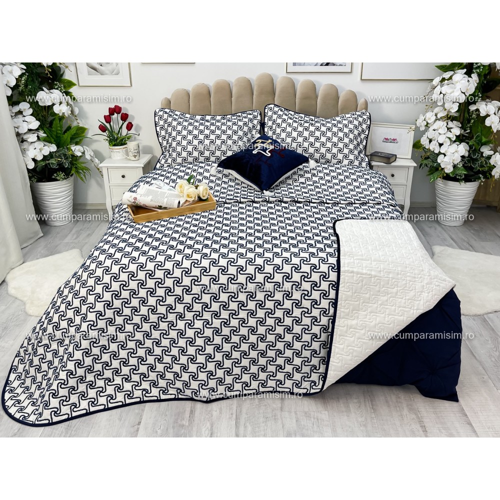 Cuvertura pentru pat dublu confectionata din microfibra soft matlasata cu vatelina siliconizata.