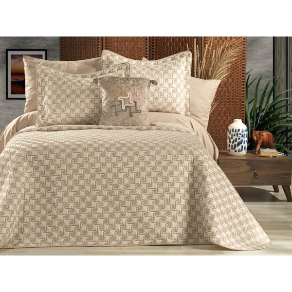 Cuvertura ARIA pentru pat dublu cu smocuri brodate si 3 fete de perna, Bej, Casa Sabry, cod produs: CVS61