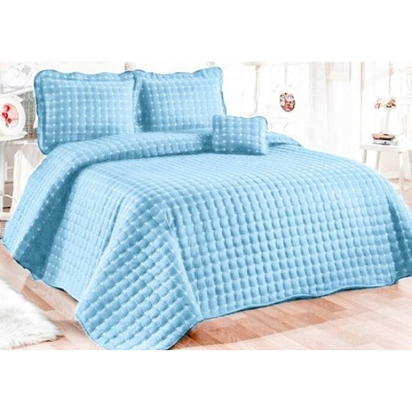 Cuvertura Brodata pat dublu cu 3 fete de perna, bleu, Casa Sabry, cod produs: SBR-CVM-08