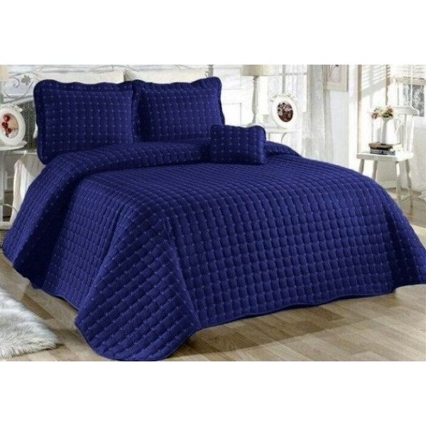 Cuvertura Brodata pat dublu cu 3 fete de perna, bleumarin, Casa Sabry, cod produs: SBR-CVM-15