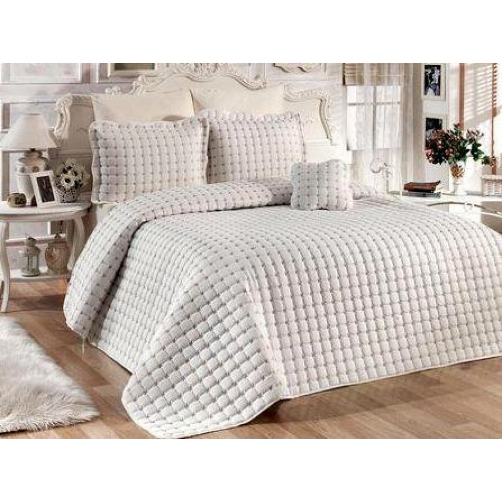 Cuvertura pentru pat dublu confectionata din microfibra soft matlasata cu vatelina siliconizata.