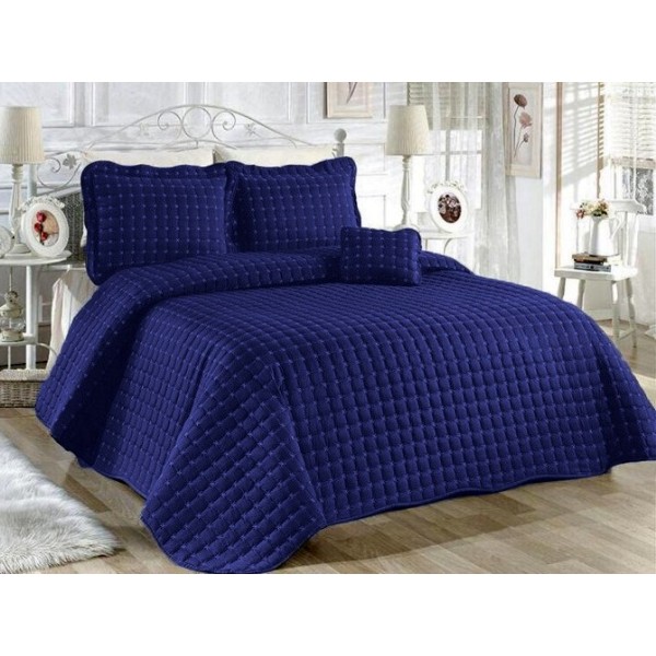 Cuvertura Brodata pat dublu cu 3 fete de perna, albastru royal cod CVS14, Casa Sabry