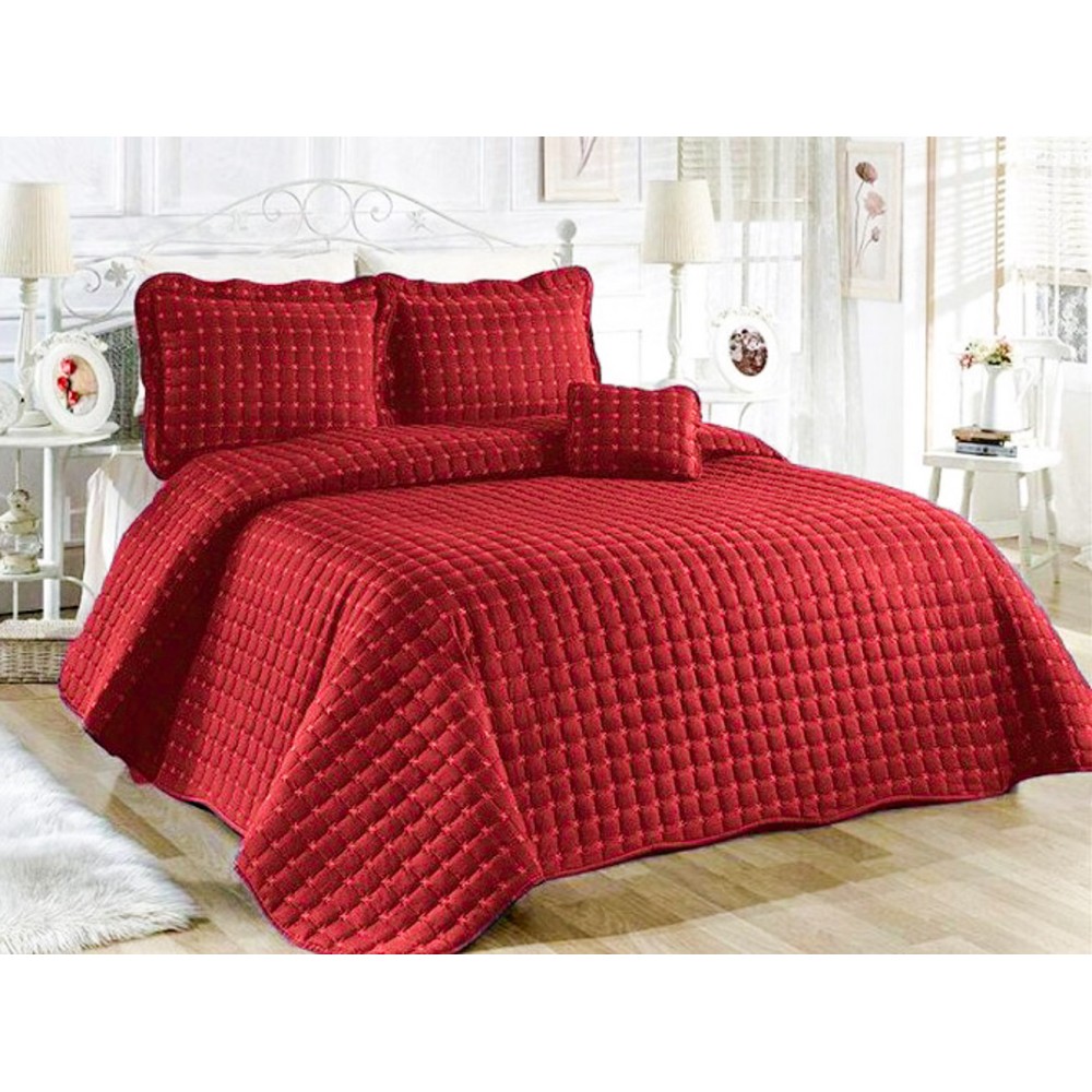 Cuvertura Brodata pat dublu cu 3 fete de perna, rosu cod CVS16, Casa Sabry